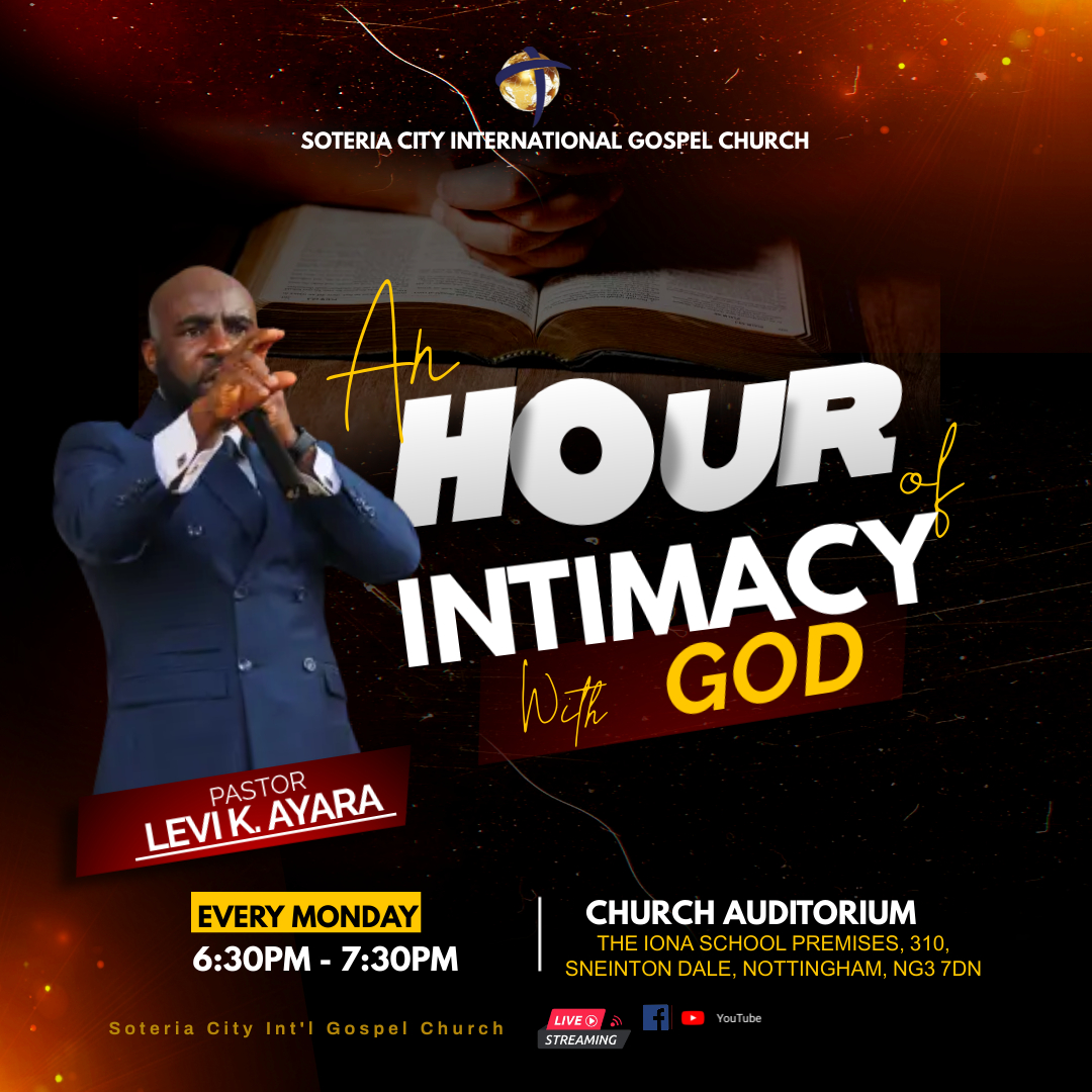 Soteria City International Gospel Church is a bible-based Pentecostal church with a global mission to illuminate the world with God's light. Our apostolic, prophetic, and evangelistic ministry attracts fervent and passionate believers from Nottingham and beyond. Through both in-person and online gatherings, we create an atmosphere where believers can experience true worship, engage with the Word, participate in prayer, witness miracles, and embrace love. Our ultimate goal is to foster intimacy with Jesus and empower believers to become ambassadors of God's light and power.